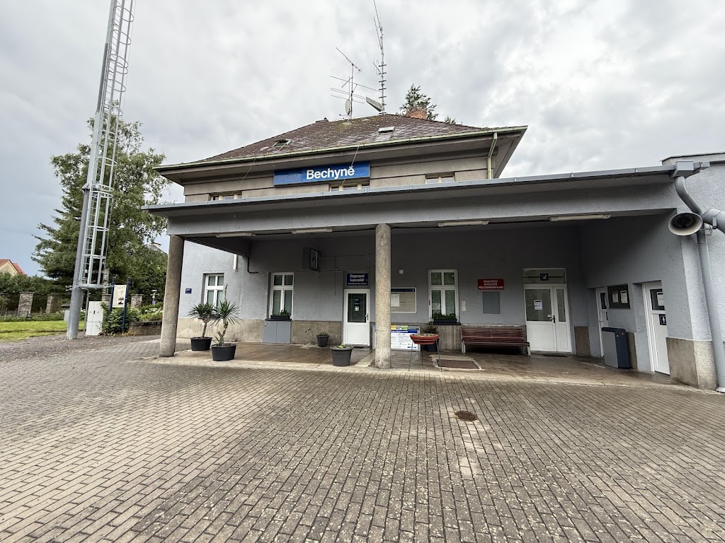 The original railway station was built according to a standardized building model by the private company Družstvo bechyňské dráhy. The electrified line from Tábor, where the line of the company Emperor Franz Josef's Railway passed between Vienna and Prague since 1871, became the first of its kind in Austria-Hungary and in Central Europe in general. Entrepreneur and inventor František Křižík played a significant role in its construction. In 1928, after the newly opened Bechyně bridge, the railway was terminated closer to the town, which extended the length of the line from 23 to 24 kilometers. At the station, there are two uncovered edge platforms for passengers, and crossings over the tracks are used to get to the trains. Access to the station building, as well as to both platforms, is not barrier-free.
