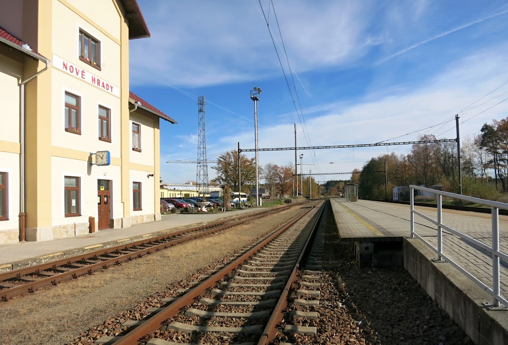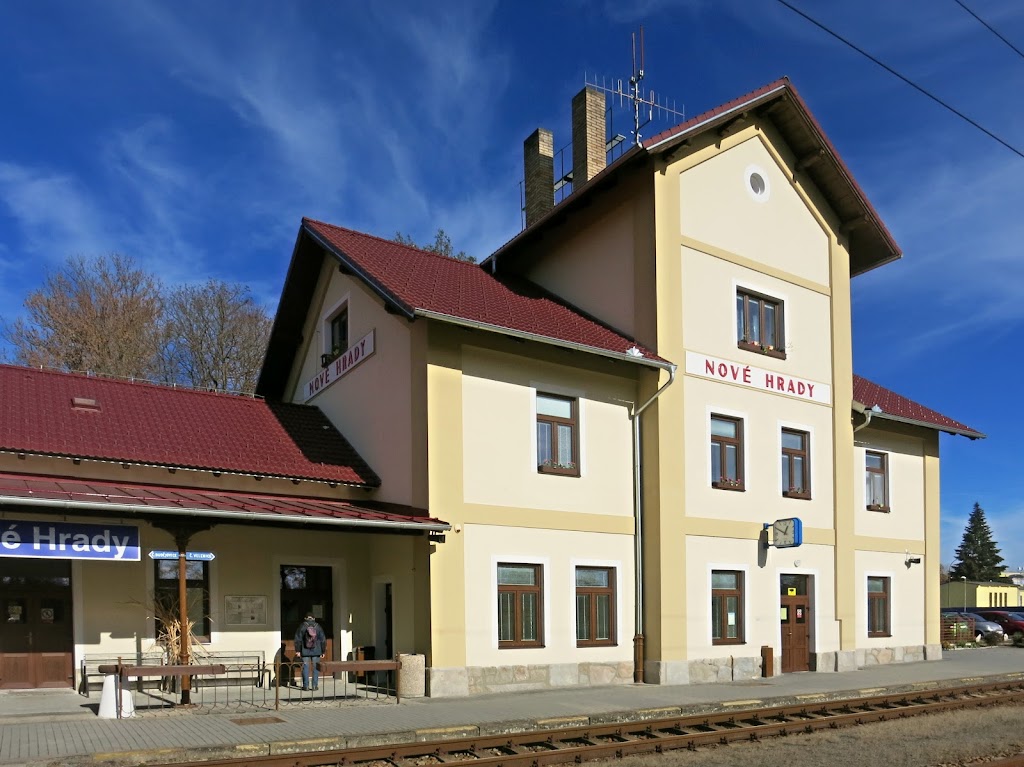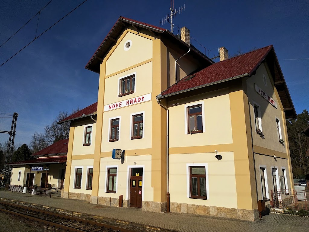Stredne velka zeleznicni stanice, budova je neobsazena a cestujici se odbavuji ve vlaku. Nastupiste je bezbarierove pristupne a nachazi se na nem pristresek. Pred stanicni budovou je zastavka autobusu pro linku Hranice - Nove Hrady, zel. st. - Nove Hrady aut. nadr. - Benesov n. Cernou. Spoje autobusove linky maji navaznost na vlaky a opacne, nebot mesto Nove Hrady se nachazi cca. 5 km od zeleznicni stanice.