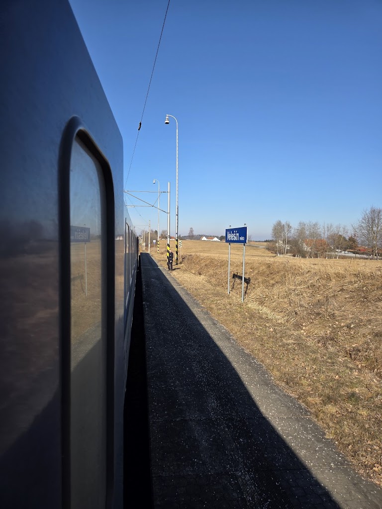 Krásné malé nástupiště které může změnit jízdu kvůli tomu že na Velešín nádraží se nezastavuje tak se můžete vydat na výlet i z tadytý zastávky na různé dobrodružství a velký výběr vlaku které tam zastavují jsou tři jižní express osobní vlak a ještě jeden osobní vlak jeden je city shuttle pro öbb a druhý je Regio panther pro české dráhy