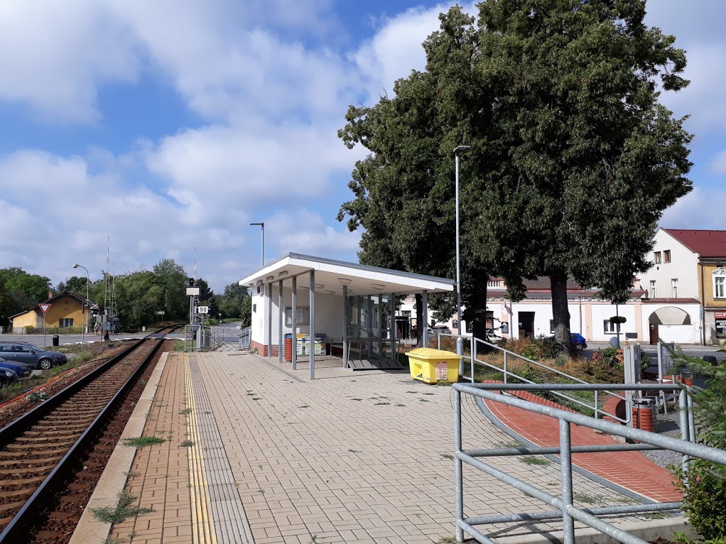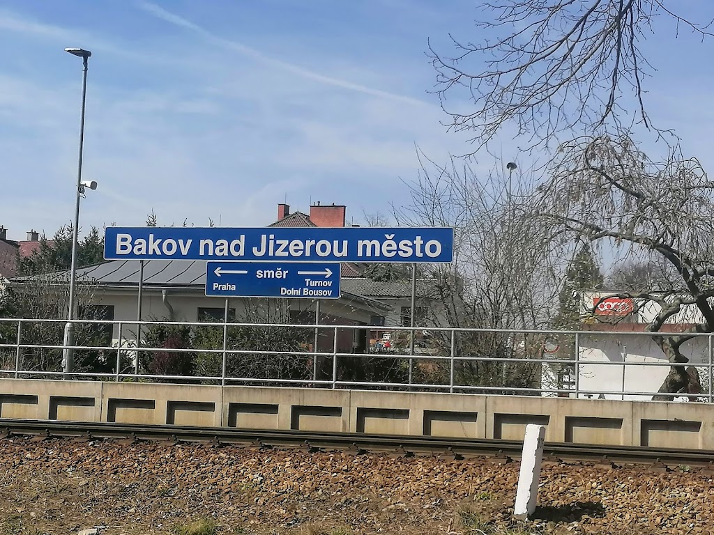 The Bakov nad Jizerou city stop is located near the Bakov center and is part of two lines - line 070 (Turnov - Neratovice - Prague) and line 063 (Bakov nad Jizerou - Dolni Bousov - Kopidlno). The history of the stop is related to the beginnings of the operation on the line Turnov - Kralupsko - Pražské dráhy, on which the train started in October 1865. In the summer of 1890, when it was built, it was a stop with loose platform and simple wooden waiting room without windows. Over the years, the stop was used by an increasing number of passengers and the waiting room was rebuilt and an annex building with ticket sales was built to it, in 1927 the waiting room was already isolated and heated by a stove. The last major reconstruction was in 2014, when the old buildings were demolished and a new modern outdoor waiting room was built, the platform was reconstructed and the whole area of access to the stop and its surroundings was modified.