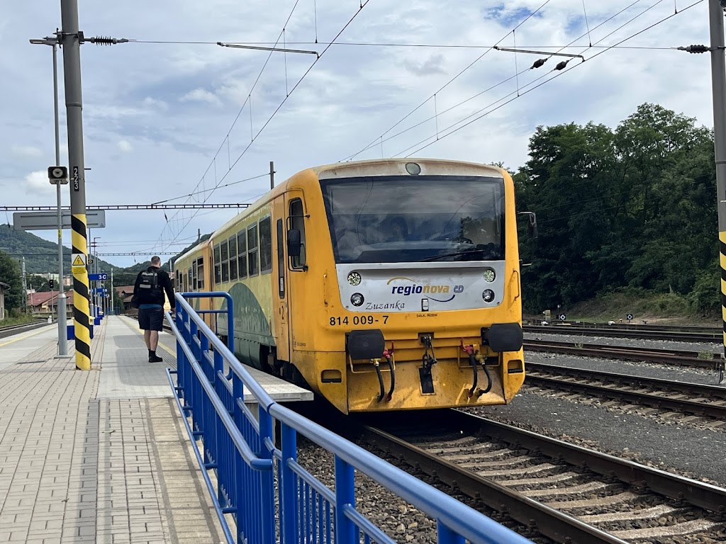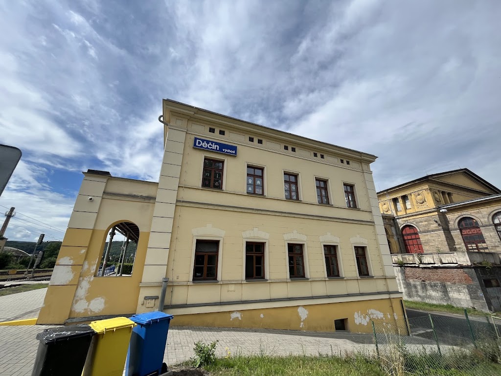 V sobotu 12.10.2024 zastávka parního vlaku s lokomotivou "Zelený Anton" na obrovském nákladním vlakovém nádraží Děčín východ. Čekali jsme zde asi 5 minut na volnou kolej, abychom mohli pokračovat až na děčínské hlavní nádraží. Na tak obrovském nádraží je ale minimální provoz, moc velká škoda. Hlavní budova tohoto nádraží je pěkně opravená.