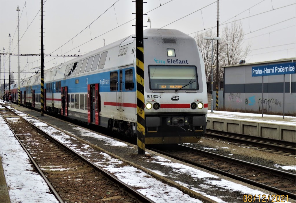 Passenger trains and express trains run along line number 231. In Horní Počernice, only the passenger trains stop. Most of them are led to Masaryk railway station. The last evening train ends at the Prague´s Main Station, from where the first trains leave in the morning. Due to the low capacity of Masaryk Railway Station, some passenger trains are terminated in Vysočany. The final station in the opposite direction is Lysá nad Labem, Nymburk, Kolín or Kutná Hora - Hlavní nádraží. At the peak of working days, a regular interval of 30 minutes is introduced, in other periods 60 minutes.