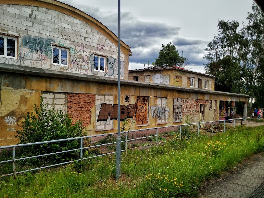 Chátrající budova, vše počmarané grafiti. Jedno z nejhorších míst v Litvínově.