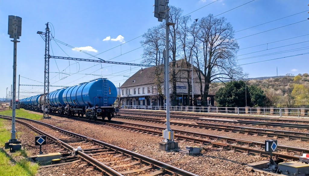 Moderní stanice z 90' kde je automat na kávu, lístky, WC na kartu i čekárnu. Ale vlaky jezdí tak často, že to ani není třeba 😉