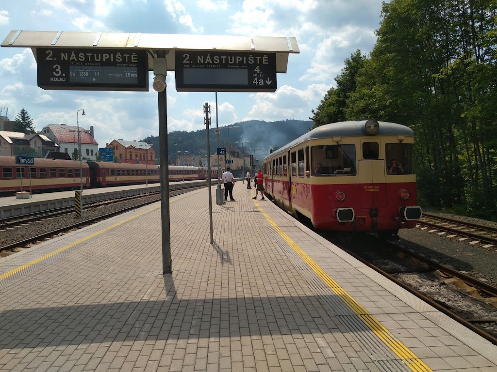 Toto nádraží hodnotím v porovnání s ostatními vlakovými nádražími jako jedno z úplně nejlepších - přívětiví zaměstnanci, automat na kávu, WC klíč k zapůjčení u pokladny, bytelné lavičky uvnitř, mapy a různé informace pro turisty i místní obyvatele. Místo, které, když přijdete brzy ráno pro první ranní kávu z automatu a usazeni na lavičce začnete jíst svačinu z batohu a popíjet horký nápoj, rozehřeje vaše smutné srdce i ustaranou a udřenou duši. Chcete-li se dozvědět novinky nejen o dopravě, ale především nasát místní tanvaldskou atmosféru a zapříst hovor o čemkoliv s místními lidmi, kteří zde brzy ráno tráví taktéž chvilku nežli se vrhnou do celodenní údržby zeleně, apod. je to opravdu místo právě pro Vás. Nebýt tohoto nádraží a obětavých "paní za přepážkou", moje "dovolená" v Šumburku nad Desnou (Tanvald) by vůbec nebyla dovolenou. Děkuji vám! :-)